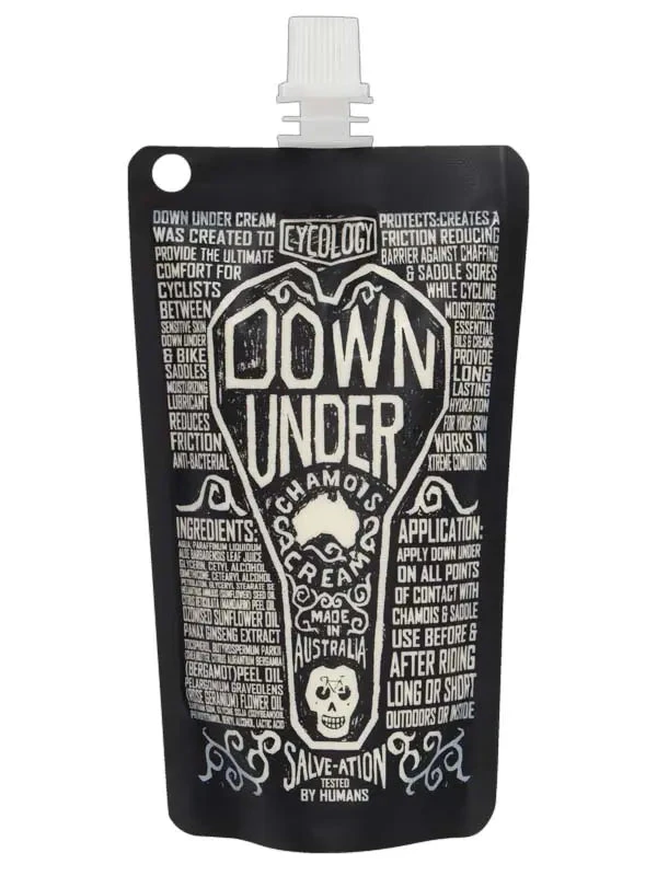 DOWN UNDER chamois cream is structured to protect and hydrate those areas of the skin that are more subject to chafing, sweat & irritation caused by contact with clothing & long hours on a saddle.