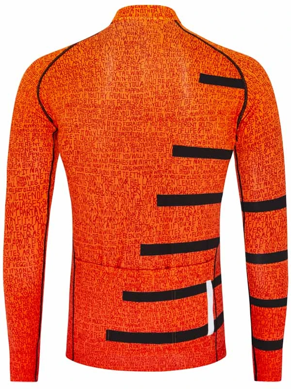 A bright vibrant jersey with subtle inspiring words motivated by a song giving advice about life. Here’s our take on it, all about cycling.