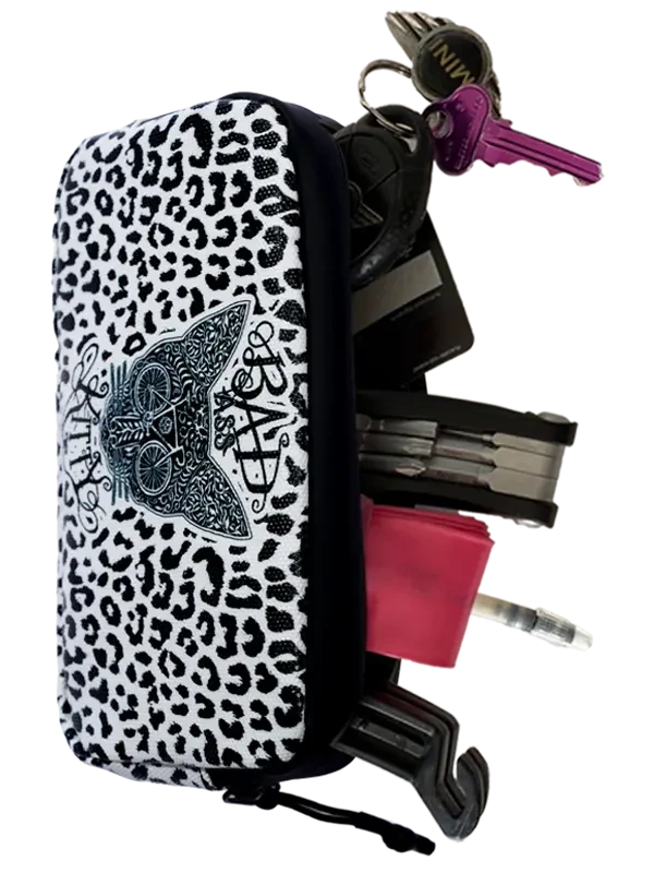 The water-resistant fabric case protects your essential cycling accessories and features a waterproof zipper with a heavy-duty, extended rope zip-pull for easy access on the bike.