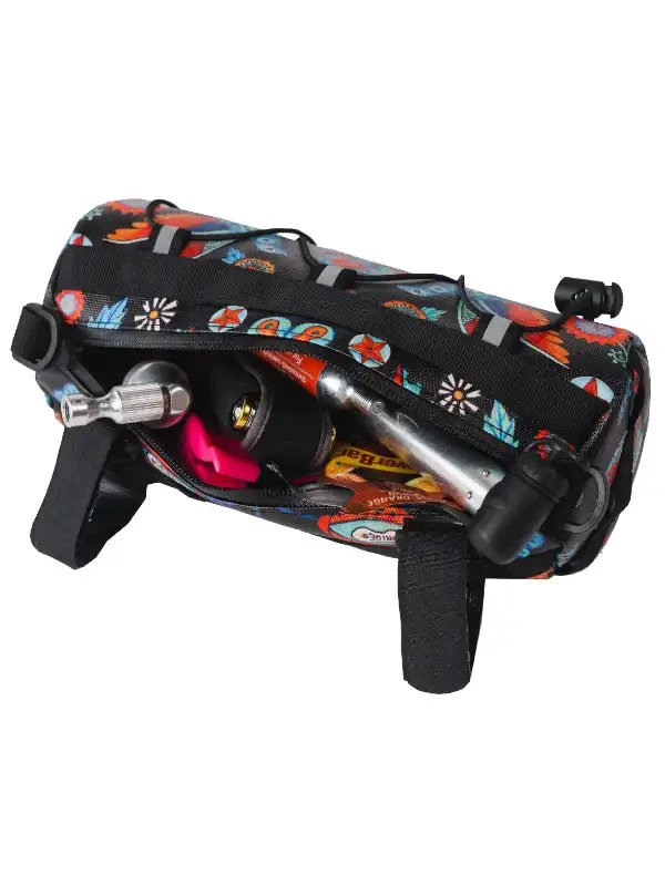 Offering a stylish and practical addition to your ride, our handlebar bag will keep all your riding essentials within arm’s reach. Easy to install by attaching to your handlebars and available in a variety of colours and original designs.